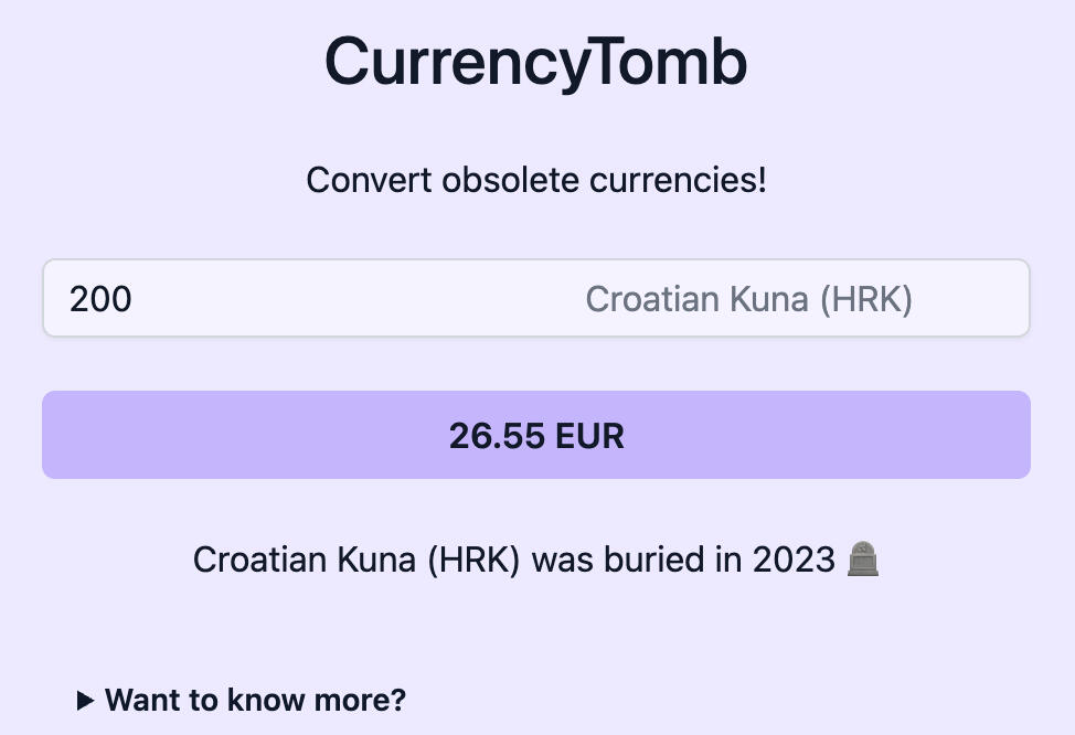 A tiny obsolete-currency converter. Got 132 upvotes at Product Hunt 👏